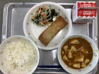 今日のメニューは、手作り春巻き、もやしの中華サラダ、麻婆豆腐です。
