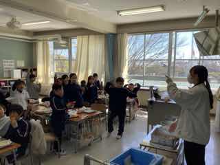 今日は、6の4におじゃましました。さすが6年生。手際よく準備をしていきます。
