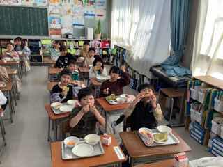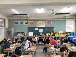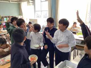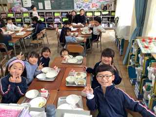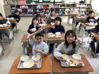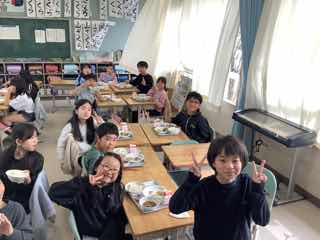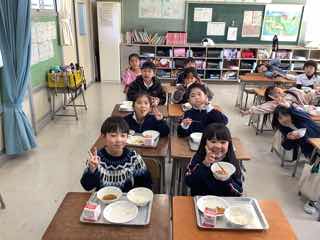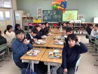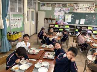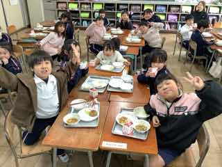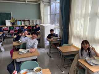 みんな豚汁を飲み、ご飯を口いっぱいに頬張っていました。