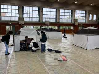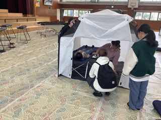 防災テントを設置しました。テントの中にはベッドも入ります。