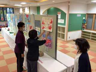1学期に行われた絵をかく会の優秀作品が、1階の廊下に掲示されています。