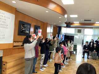 修了証を教育委員会から、1人ずつ受け取り、カラフル室長から言葉を全員にかけていただきました。その後、「にじ」を手話付きで歌ってくれました。