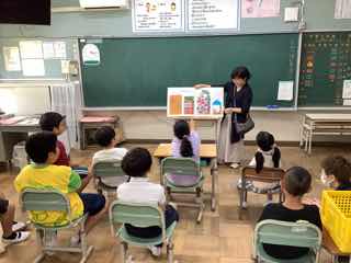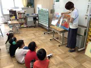 朝の時間に、図書館ボランティアさんによる読み聞かせを実施しています。