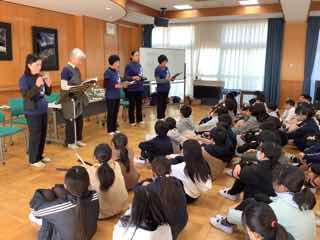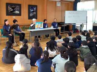 今日の午後、かたりべ そよかぜ組の皆さん5名に来校していただき、読み聞かせがありました。