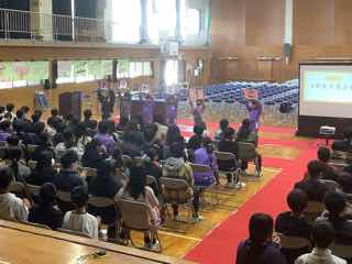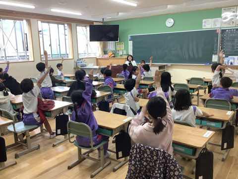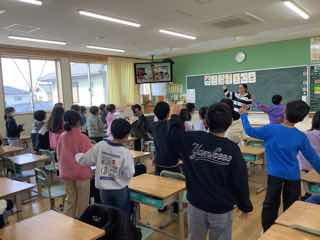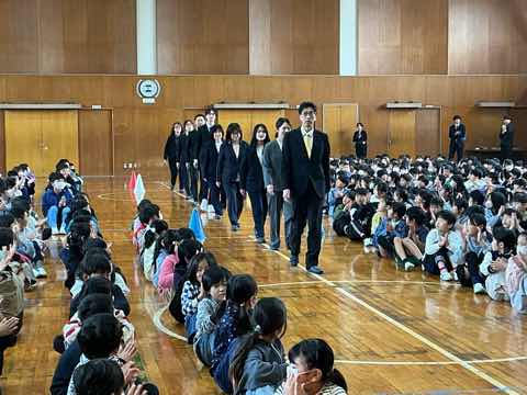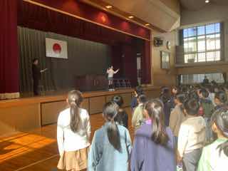この春、矢田小学校を去った先生方が、子供たちに挨拶に来てくださいました。