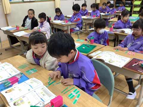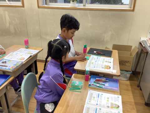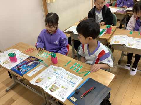 ペアトークの時間には、自分の数え棒を動かしながら説明していました。