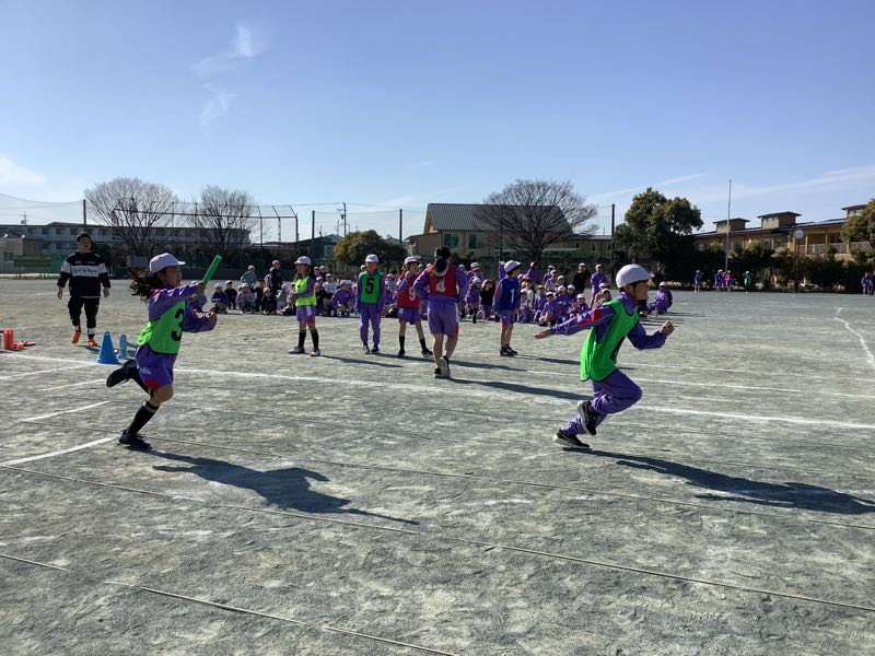 授業で学んだバトンパスを生かして、代表の子は走りました。見ている子たちは応援をし、その応援が力となり、とても盛り上がりました。