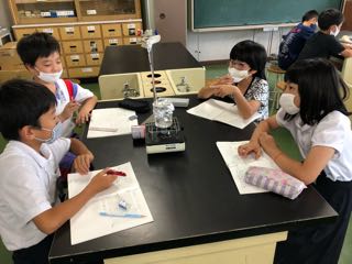 水を温め続けるとどうなるのか、1分ごとに温度と水のようすを観察しました。