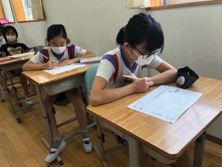 国語の授業の最初に詩の暗唱をしています。今は「あめのうた」の暗唱をしています。今日は3人が合格しました。