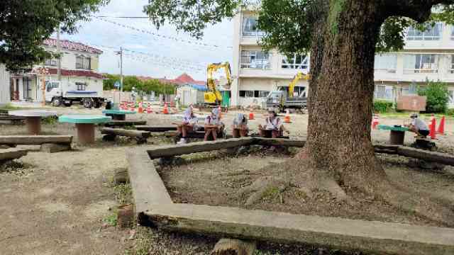 実際に校舎を見ながらの下書きでは、「難しい〜」とつぶやきながら、一生懸命に観察していました。