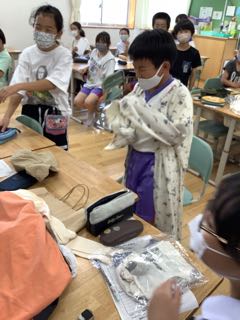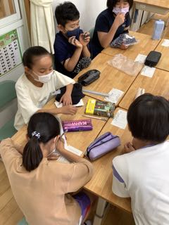 来週のかかし作りに向けて、どんなかかしにするかグループで話し合いました。