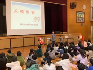 6日の2時間目、人権教室を行いました。人権擁護委員の方に来ていただき、人権とは何かを教えていただきました。また、医師の詩から、「いのちといじめ」について考え、話し合いました。