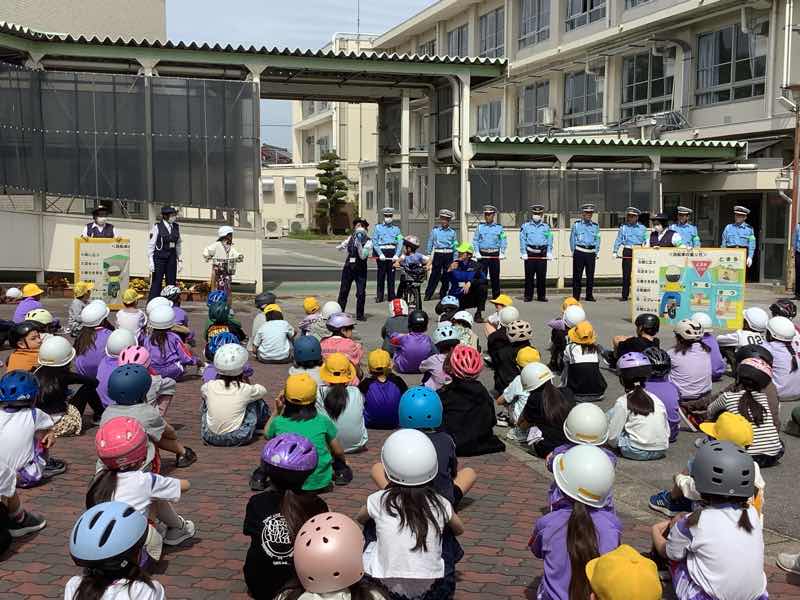 など、たくさんのことを教えていただきました。矢田小学校を出発して、道路での訓練も実施しました。学校に戻ってからも、整頓して自転車を並べることができました。