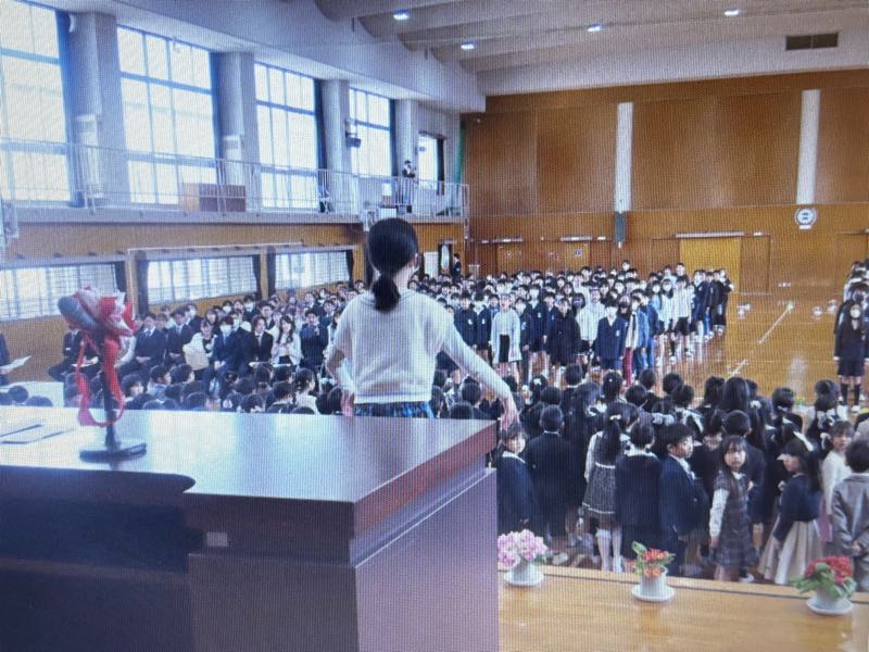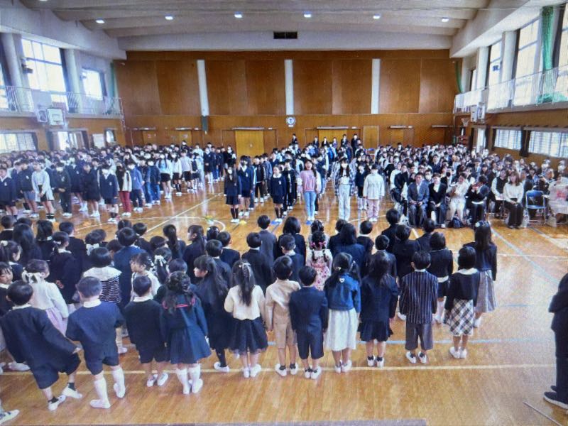 6年生は、学校の代表として、元気な声で矢田小学校の校歌を歌い、6年生をあたたかく迎えました。