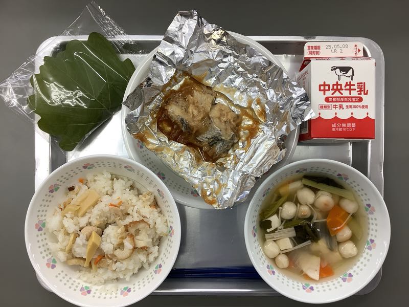 今日は端午の節句にちなんだメニューで柏餅がつきました。🎏柏の葉のよい香りがしました。矢田小の子供たちの健やかな成長を願っています。