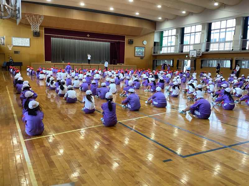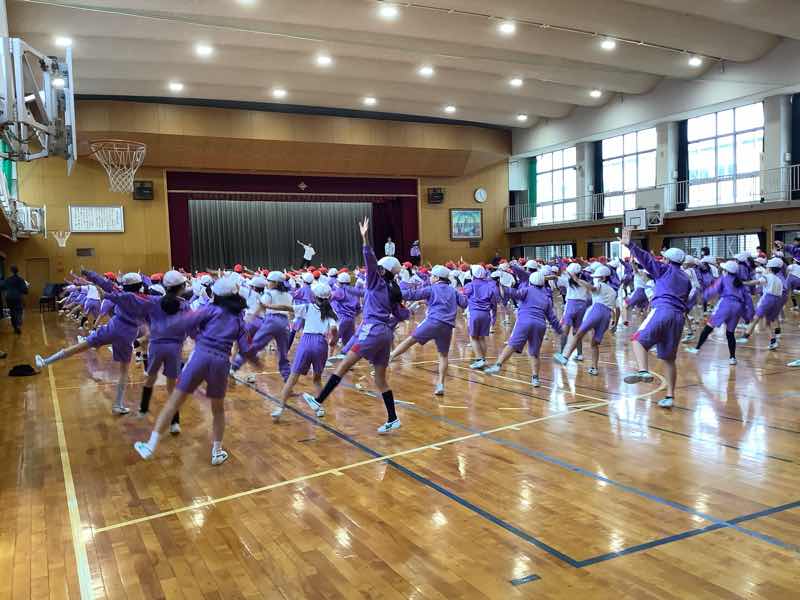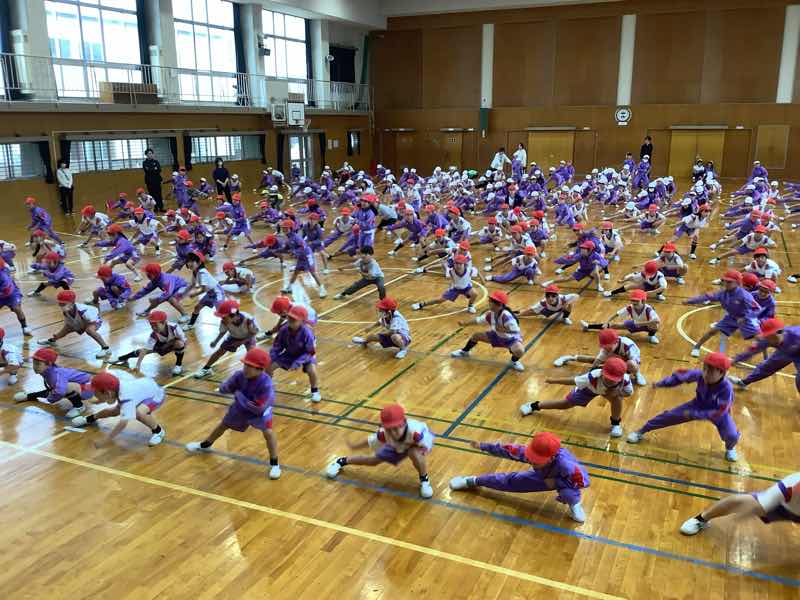 中学年が運動会の練習をしました。今日は、あいにくの雨だったため、体育館で徒競走の並び方の練習とダンスの掛け声の練習をしました。集合完了時刻より前に中学年全員が集合をすることができ、チャイムの合図とともにスタートすることができました。徒競走並びでは、何回も並ぶ練習をし、素早く静かに、列も揃えて並べられるようになりました。ダンス練習では、掛け声の練習をした後、全て通して練習をしました。中学年全員の力強い掛け声は、CDの音を掻き消すほどでした。