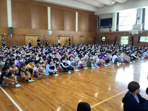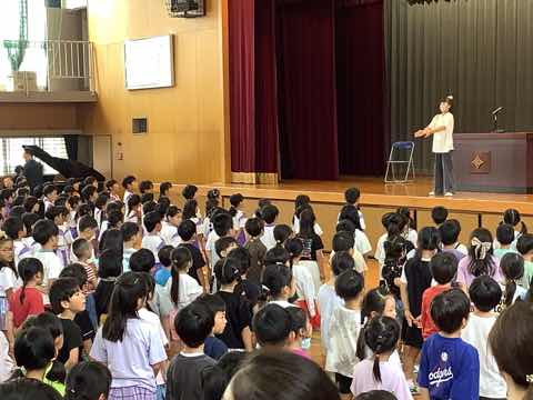 梅雨入り間近ではありますが、爽やかな朝を迎えました。今日は、体育館で全校集会を行いました。6年生の指揮者に合わせて、校歌斉唱をしました。