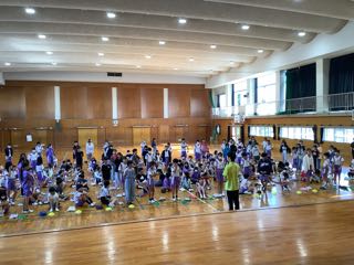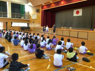 6日、5年生が体育館で学年集会を行いました。始めに、野外学習で行われた『ドッジボール大会』の表彰を行いました。