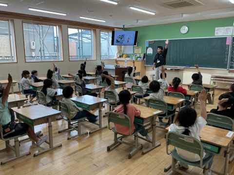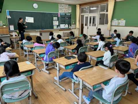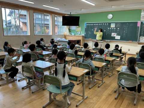 「あいうえおのことばをあつめよう」の学習では、「あ」から始まる言葉を出し合いました。手を叩いて音のかずを確かめながら、楽しく言葉の学習をしていました。