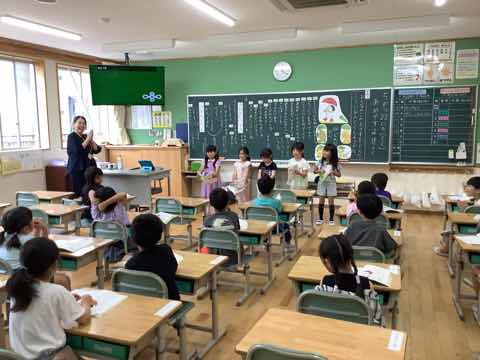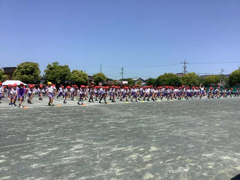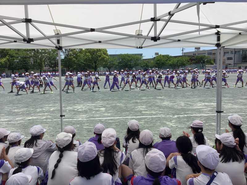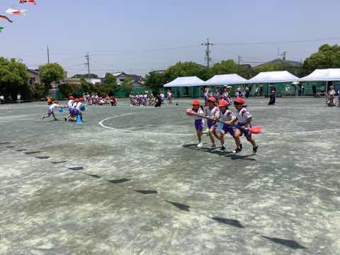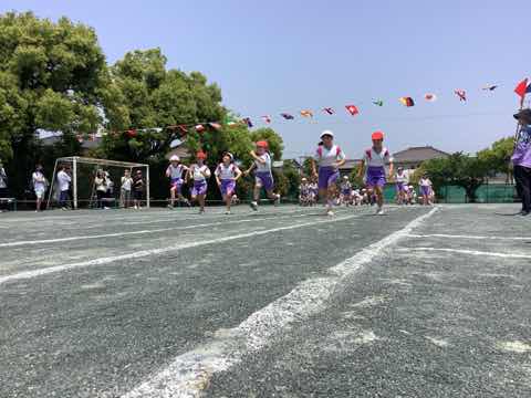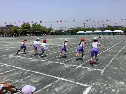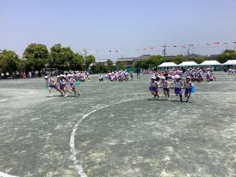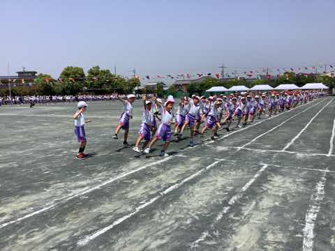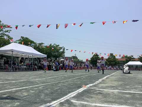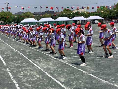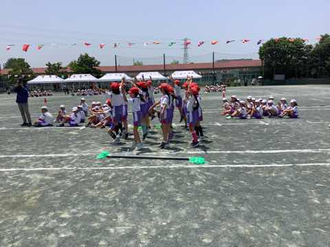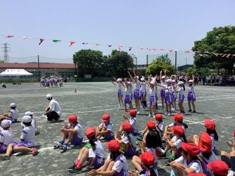 タイフーンリレーでは、4人で協力して棒を運びました。各クラスで、どうしたら早くゴールできるか作戦を立てて、工夫して行いました。勝ったクラスは万歳をして喜び、負けたクラスは、悔しいけれど、拍手で勝ったクラスを讃えました。徒競走では、1、2年生より成長した身体で、ぐんぐんと走り抜けました。ダンスは、腕を伸ばすところとボックスステップを格好良く踊りました。見ている人の笑顔を増やした演技でした。
