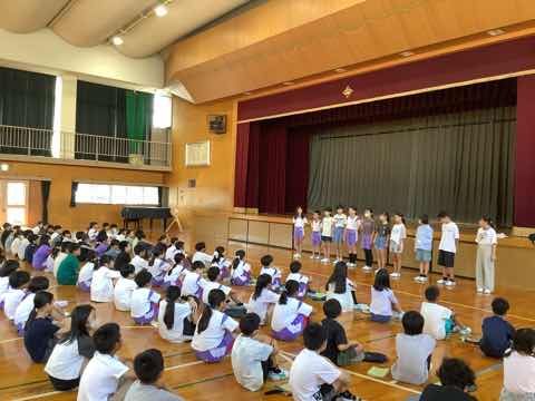 野外学習に向けて、学年集会を行いました。実行委員から、スローガンの発表がありました。野外学習を成功させるために実行委員が児童のリーダーとして活動しています。