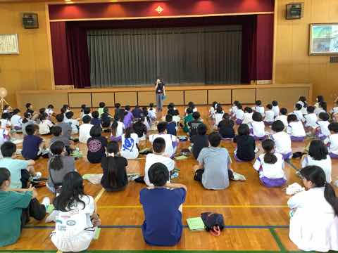 子供たちは真剣に話を聞いていました。初めての宿泊学習に向けて、持ち物や心構えなどを学んでいました。