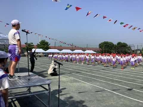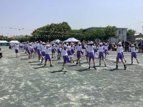 ダンスでは、指令台の上の先生と一緒に、元気なかけ声を出しながら踊りました。2年生は、司令台に背中を向ける隊形にもかかわらず、踊りがとても上手で驚きました。