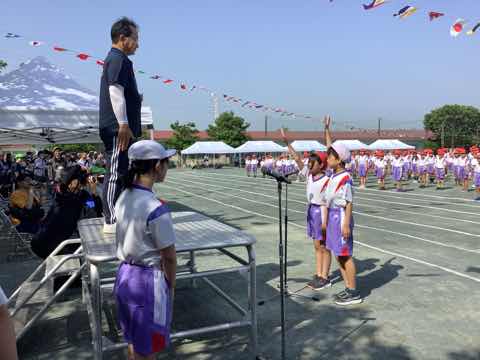 GW明け、数日たっての集会でしたが、児童会長および全校児童の元気な挨拶で始まりました。校長先生からは、中・高学年の運動会予行ののびのびと力いっぱい演技にのぞむ姿、日々の児童のみなさんがかもし出す温かみのある雰囲気をほめていただきました。