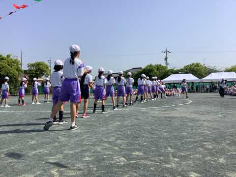 本日は運動会日和です。朝一番から職員がテントや白線引きなど準備をしました。また、PTA役員さんや代議員さんらも集まり、万国旗を取り付けてくださいました。運動会の準備が着々と出来上がっています。子供たちの晴れ姿をぜひご覧ください。