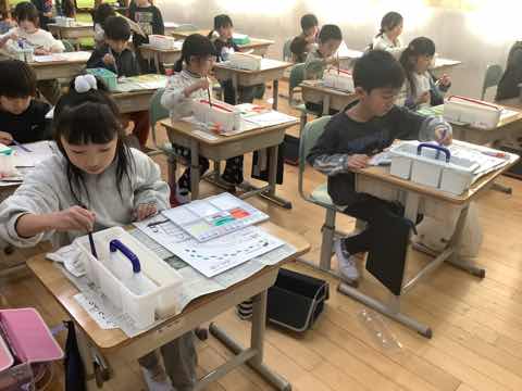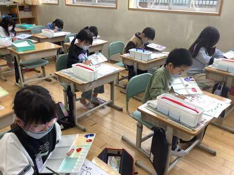 図工の授業では、絵の具練習がそろそろ終わりに近づいてきました。