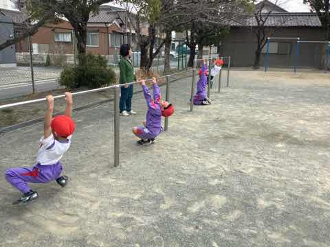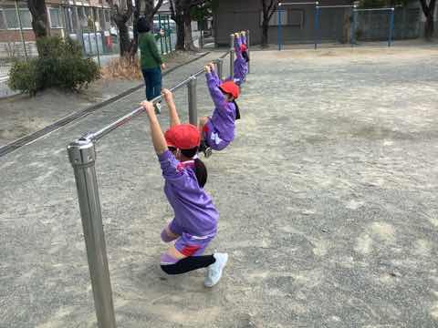 みんなしっかり鉄棒を持つことができました。