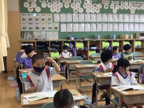音楽の授業では、「アイアイ」を歌いました。