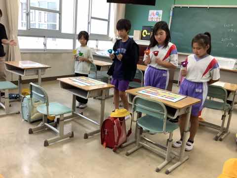 本年度第1回のクラブ活動がありました。 伝承遊びクラブでは、昔懐かしい遊びを体験しました。大きなブンブンゴマを上手に回す子供たちは和やかな雰囲気でした。 また、茶道クラブは「ふくさ」のたたみ方を練習しました。和室で正座をしながらの学習ですが、行儀よくできました。どちらも地域の方に講師として来ていただいているクラブです。 様々なクラブで、普段とは違うことを学んでいました。