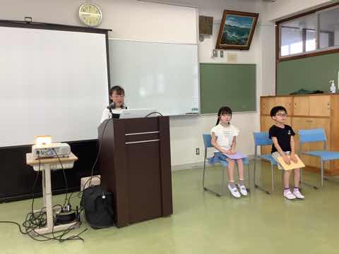 その後、夏休みに書いた、読書感想文や社会を明るくする作文コンクールの表彰がありました。1から3年生は教室のモニタを見ながら行った全校集会でしたが、教室から、拍手を送りました。
