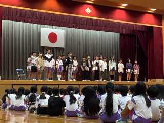 また、前期児童会役員の挨拶がありました。児童会役員の経験を通して学んだことを一人ずつ話しました。全校のリーダーを経験したことで、視野が広がったことが分かりました。