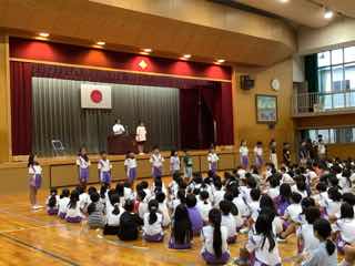 1年生の児童から、「児童集会って何ですか?」と質問されたので、「5年生や6年生のお兄さん、お姉さんを中心にした人たちが、全校に伝えたいことを話してくれる会ですよ。」と伝えました。その1年生は、「ふうん、楽しみ!」と、始まるのを心待ちにしていました。