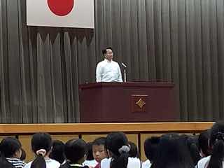 校長先生からは、二つのお話がありました。一つ目に、前期のリーダーが責任ある役割を立派に果たしたことを褒めていただきました。また、みんなが学校のためにどんなことかできるのか考えることで、より良い学校になっていくというお話でした。