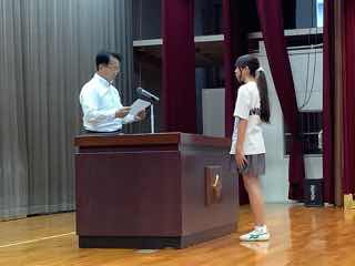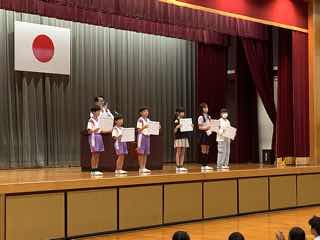 その後、夏休みに書いた、読書感想文や社会を明るくする作文コンクールの表彰がありました。1から3年生は教室のモニタを見ながら行った全校集会でしたが、教室から、拍手を送りました。
