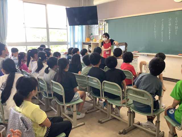 今日は3年生の教室で読み聞かせをしていただきました。 体を揺らして一緒に歌う姿、声をあげて反応する姿、目をきらきらさせて話を聞く姿。ボランティアさんが工夫を凝らした読み聞かせをしてくださったおかげで、子供たちは本の世界を楽しんでいました。2学期の読み聞かせも楽しみです!