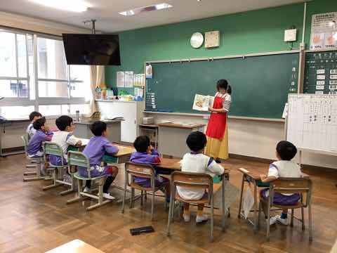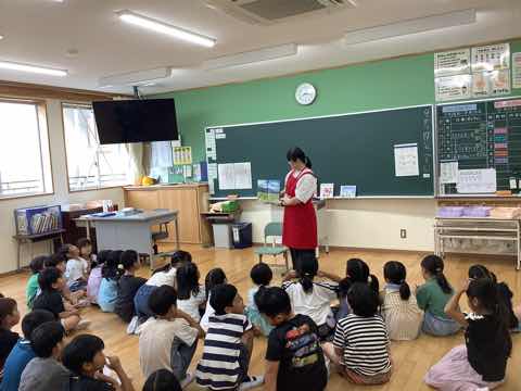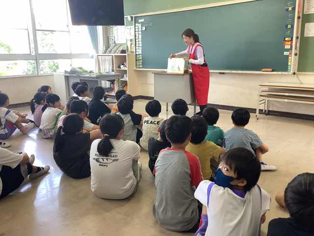 今日は、1年生に向けて、図書館ボランティアさんが読み聞かせをしてくださいました。きらきら光るイラストや紙芝居など、物語の世界に入り込むことができるような工夫が凝らされており、子供たちから、わあっと声が上がっていました。心が豊かになる、素敵な時間を過ごすことができました。図書館ボランティアさん、ありがとうございました。