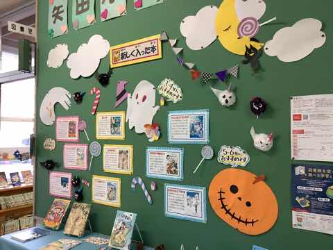 図書館は季節に合わせた飾り付けがされています🍁この時期はハロウィン🎃この飾りも図書館ボランティアさんが作ってくださっているものです。図書館に来たときには飾り付けにも注目してみてくださいね👀