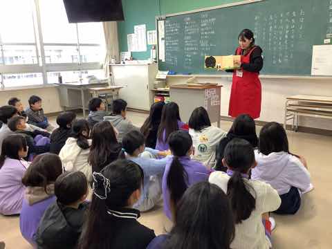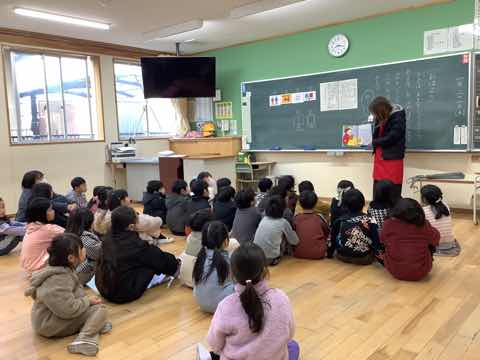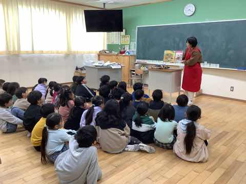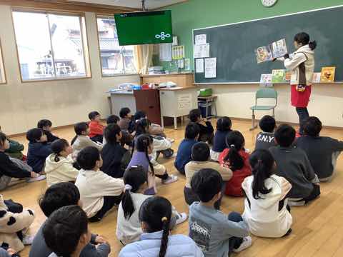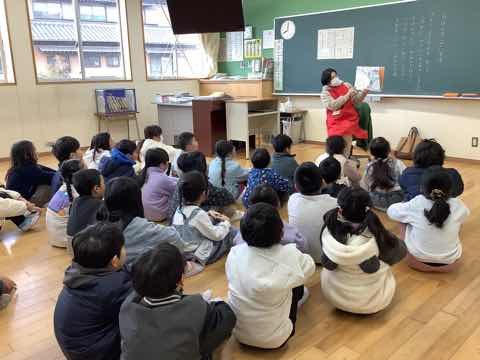 今日は、2025年最後の図書館ボランティアさんの読み聞かせでした。2年生4クラスで読み聞かせをしていただきました。