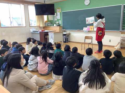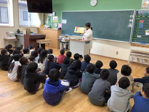 今日は図書館ボランティアさんが1年生に読み聞かせをしてくださいました。冬を感じられる本や動物が出てくる本など、素敵なお話に、みんな興味津々でした。また、歌を交えたり、声色を変えたりと、本の世界観が伝わるような読み方の工夫をしてくださり、ますます夢中になって聞いていました。ありがとうございました。