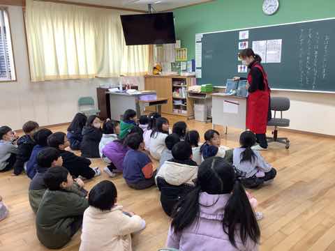 今日はあおぞら学級で図書館ボランティアさんの読み聞かせがありました。