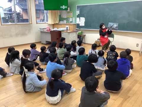 1日を楽しい気持ちでスタートできるような面白い本、心がじんわり温かくなるような本、自分だったらどうするかなと考えさせられるような本まで、子供たちの成長に合わせて、いろいろな本を読み聞かせてくださいました。真剣に聞く姿、自分の考えをつぶやく姿、思わずクスッと笑う姿。子供たちは本の世界に入り込んでいる様子でした😊