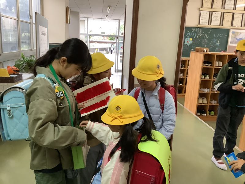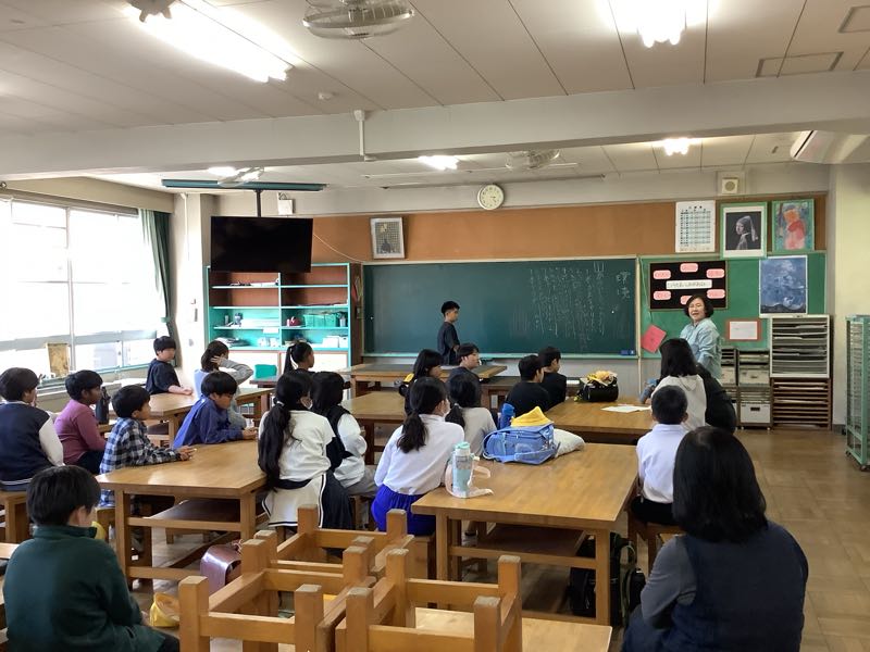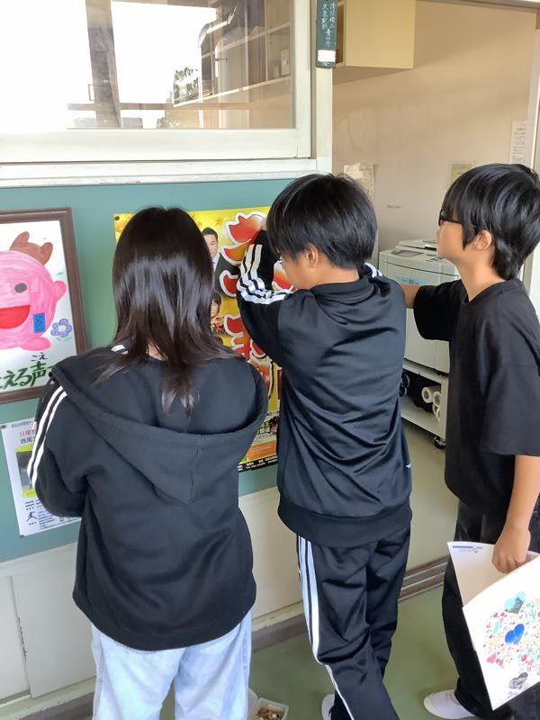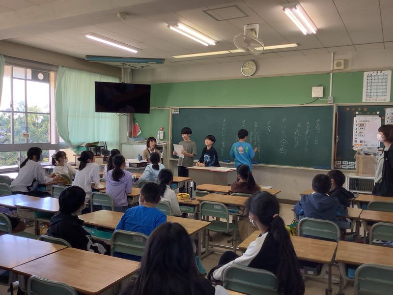 11/26(火)に全校朝会がありました。夏休みの作品応募の表彰や委員会の連絡がありました。よりよい学校生活を目ざすため、各委員会の子たちが工夫しながら連絡をしました。
