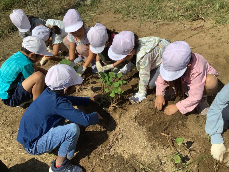 昨日、1年生では1学期に植えたさつまいもを掘りました。 一生懸命土を掘って、たくさんのさつまいもを収穫することができました。