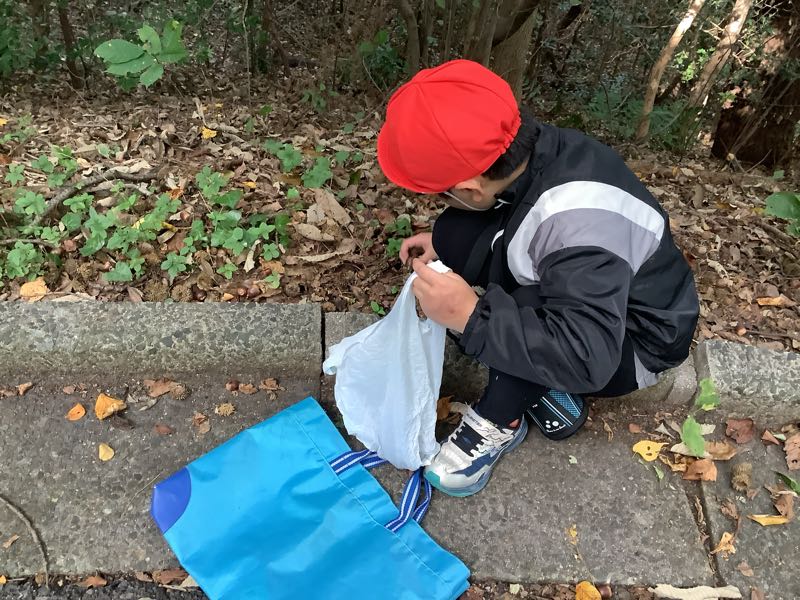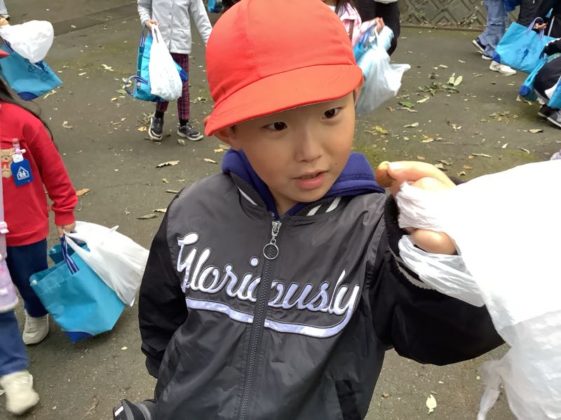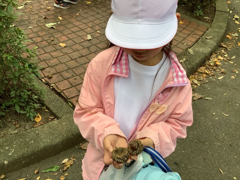 本日、八ツ面山へ秋見つけに行きました。どんぐりや落ち葉、小枝などを集めました。集めたものを使って、あさがおリースの飾り付けを行います。どんなリースができあがるか楽しみです。