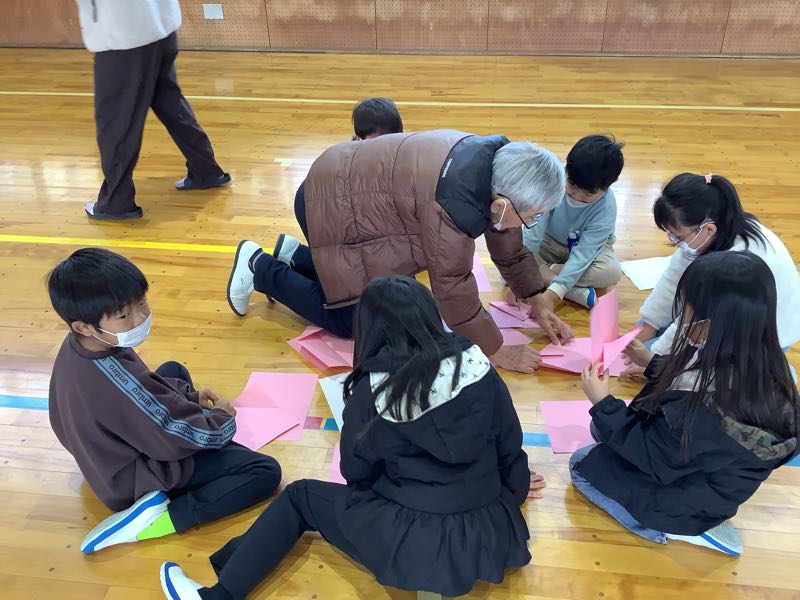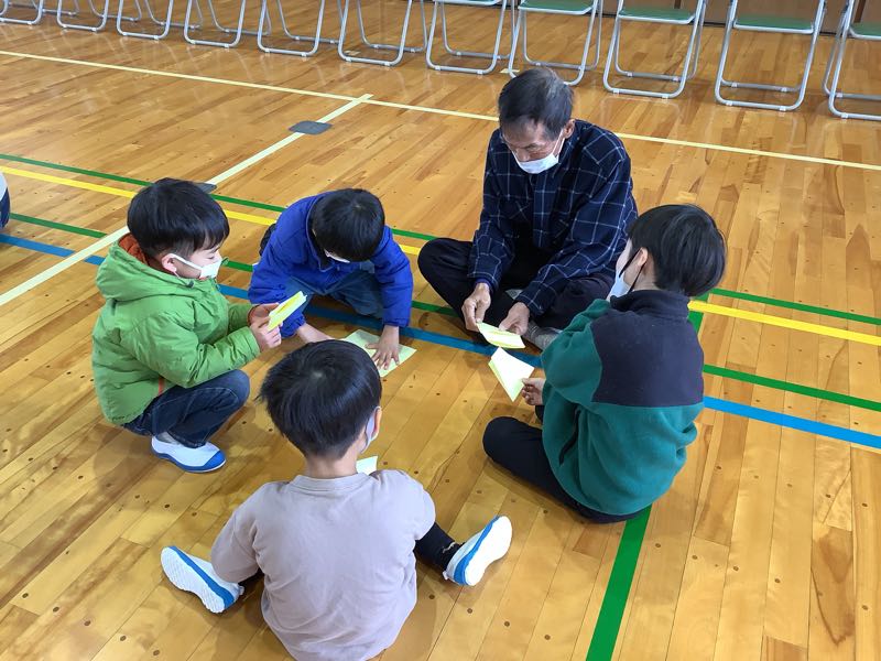 生活科の昔あそび〜紙飛行機の会〜で、八ツ面町と志籠谷町の八寿会さんの先生方にお越しいただきました。 紙飛行機の作り方を丁寧に教えていただきました。子供たちは、紙飛行機がいろんな飛び方をして歓声をあげていました。とても楽しい時間になりました。ありがとうございました。