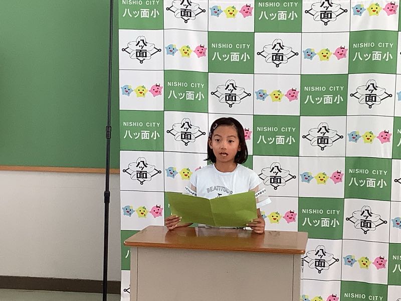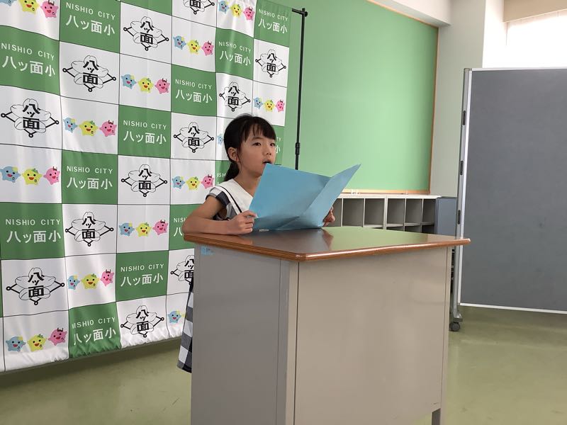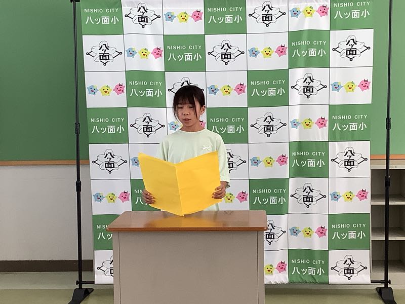 今日は、表彰と環境委員会からは生き物ふれあいタイムについてのお知らせがありました。最後に前期児童会からのメッセージがありました。